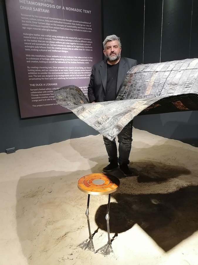 Omar created a new material similar to real leather made out of aubergine skins and orange peels skins and am working on many collaborations with different international designers to create fashion, furniture and fine jewelery items. These collaborations include: